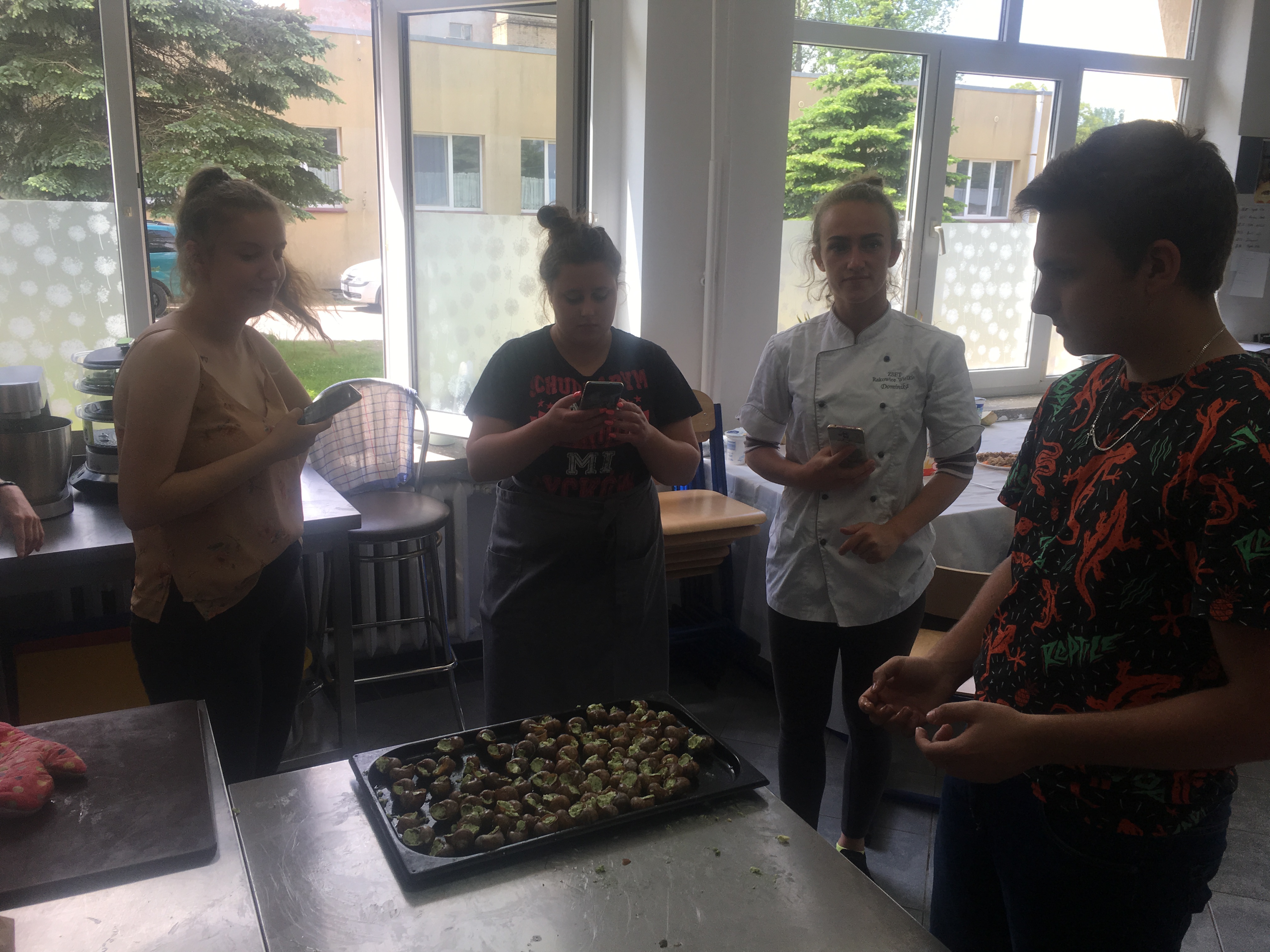 Dziś w ZSET Rakowice we współpracy klas informatycznych wraz z klasą gastronomiczną były serwowane ślimaki nasze polskie winniczki, które są eksportowane na francuskie stoły i tam serwowane jako super przysmak. Kasy Informatyczne 1dT i 3dT dostarczyły główny produkt i pod okiem Pani Agnieszki Jadach brały udział we wstępnym przygotowaniu głównego produktu (ślimaków), następnie uczniowie z klasy gastronomicznej 3dT użyły swojej wiedzy i kunsztu kucharskiego i wyśmienicie przygotowali to wykwintne dane co widać na zdjęciach.